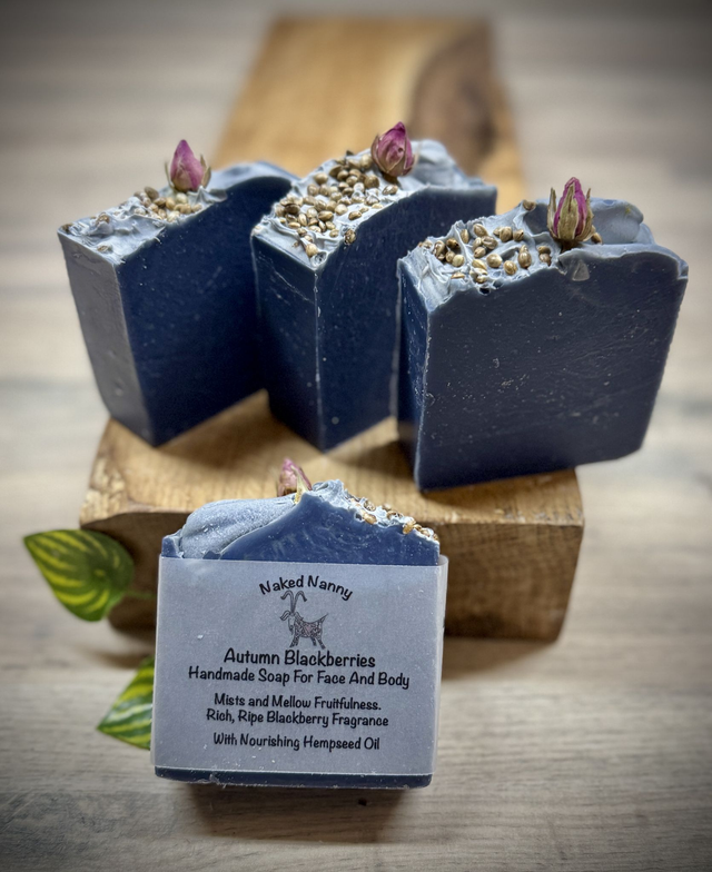 Capture the essence of the season with our Autumn Blackberries soap. This vibrant blue bar is enriched with hydrating cold pressed Hempseed oil to to help nourish your skin. Infused with the luscious scent of ripe autumn blackberries, leaving you refreshed and delicately fragranced after each wash.