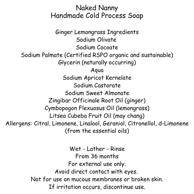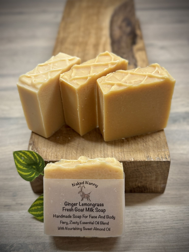 Ginger Lemongrass is a vibrant handmade soap featuring Fresh Goat Milk and a bold blend of Ginger and Lemongrass essential oils. Inspired by the invigorating aroma of a 'proper' ginger beer. Traditionally used in soap making for its creamy texture, goat milk also contains fatty acids, lactic acid and antioxidants which are believed to help nourish, cleanse and comfort the skin. Apricot Kernel, Sweet Almond and Castor oils help produce the rich, creamy lather that won't dry your skin.