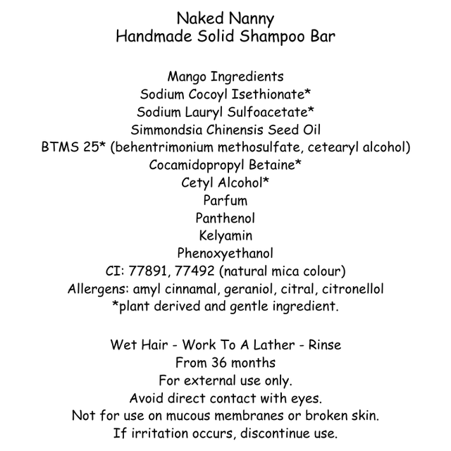 Brighten your haircair routine with the juicy, sun-kissed scent of Mango. This handmade solid shampoo bar produces a rich, bubbly lather that gently cleanses, leaving your hair soft, refreshed and easy to manage. Infused with panthenol, jojoba and wheat protein, your hair feels nourished and strengthened while being enveloped in the luscious aroma of ripe mangoes and zingy passionfruit. Each bar lasts around 50 washes (depending on hair length) and comes in a fully reusable, recyclable travel tin - tropical freshness for your hair, with care for the planet.