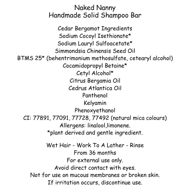 Ground and uplift your senses with Cedar And Bergamot. This handmade solid shampoo bar combines the calming, soothing benefits of cedar wood and the mood-boosting properties of bergamot essential oils. Together they could help balance the scalp, reduce excess oil, and promote a sense of well-being. The creamy lather gently cleanses, leaving your hair soft, manageable and infused with a fresh, woody-citrus scent. Enriched with panthenol, jojoba and wheat protein, hair is left feeling nourished and strengthened. Each bar lasts around 50 washes (depending on hair length) and comes in its own fully recyclable, reusable travel tin.